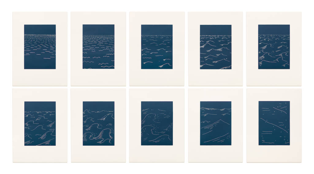 Charles Lim Yi Yong, SEASTATE 029, 2019, Relief print on Maple Ivory 200gsm paper, 10-part installation, 70 x 51.8 cm each. © Charles Lim Yi Yong / STPI. Photo courtesy of the Artist and STPI.